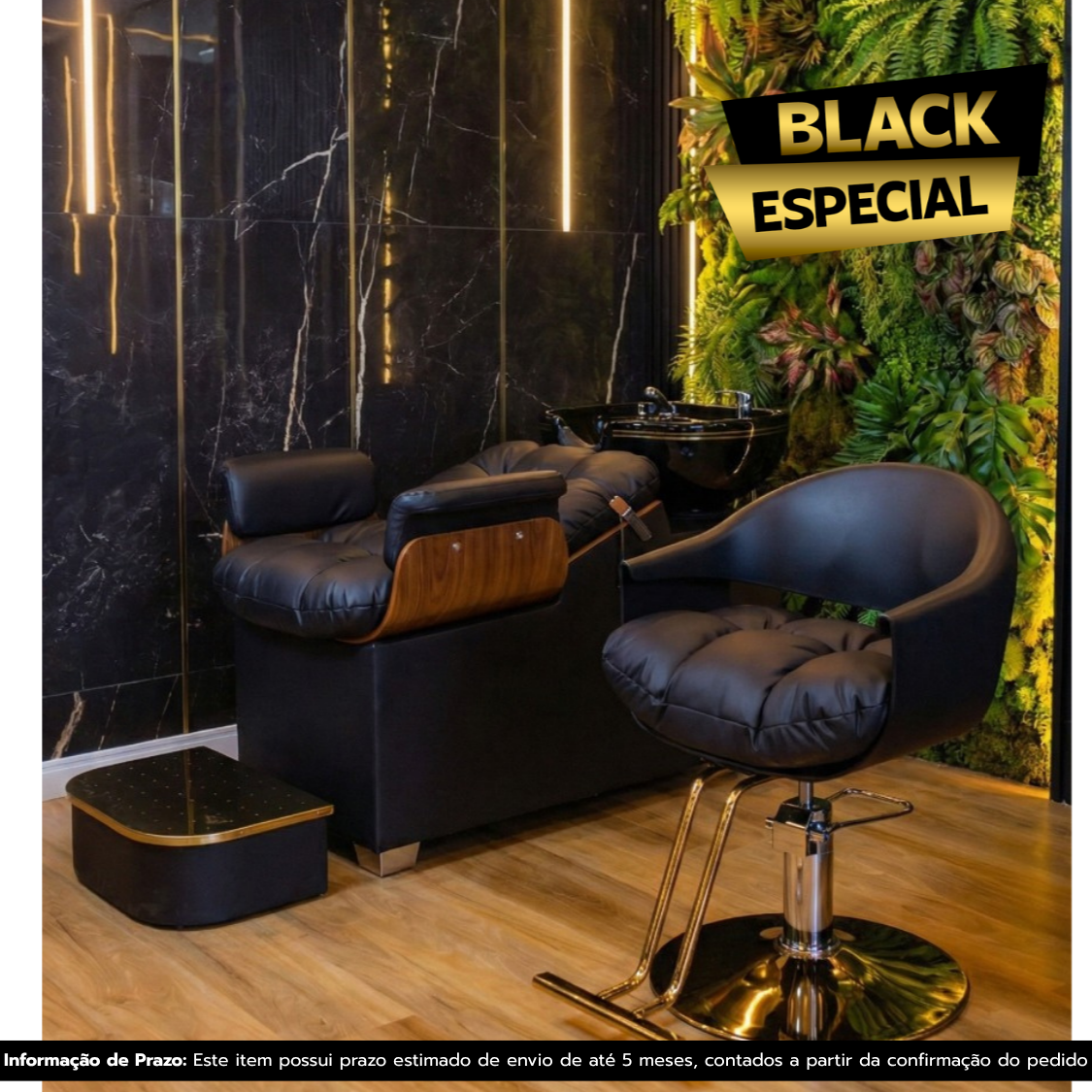 A Poltrona AP PRO une elegância e funcionalidade, trazendo acabamento luxuoso em preto com detalhes dourados. Ideal para salões de alto padrão, barbearias e espaços profissionais que buscam impactar visualmente sem abrir mão do conforto.